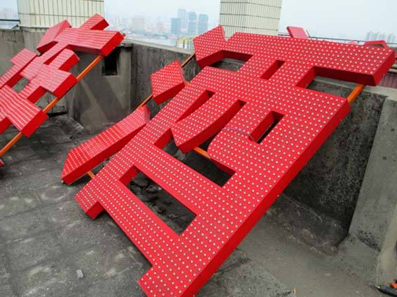 廣告字有非常多,迷你字、超級(jí)字等用廣告雕刻機(jī)可以做,沖孔字也是常見(jiàn)的廣告字之一,用什么設(shè)備做呢?沖孔字就是我們常見(jiàn)的那種在鐵皮字、不銹鋼字、鈦金字表面沖孔,再裝上單顆的防水燈串,這樣的招牌顯得很大氣且時(shí)尚,很大程度提升規(guī)模與檔次,我們可以看到一個(gè)個(gè)帶燈的字,從字的表面可以很清楚的看出光源,也可以很清楚的看到一個(gè)個(gè)的孔,這樣的字就是沖孔字,顏色也是有很多,間距是根據(jù)字的大小來(lái)決定的。沖孔字上面的孔是用什么設(shè)備來(lái)做的呢?也就是說(shuō)沖孔字要用哪種雕刻機(jī),現(xiàn)在用激光切割機(jī)比較多。